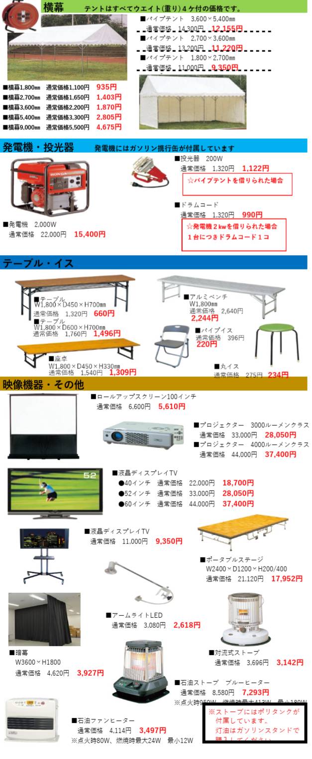 レンタル用品等